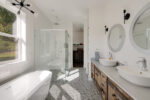 Modern farmhouse designed for comfort and connection. Set on a private 1.38-acre south-facing lot, it balances rural charm with modern sophistication. Vaulted 14’ ceilings flow from the main living area to a covered deck overlooking the creek and farmland. Natural light warms reclaimed wood, artisan millwork, and refined finishes throughout. The main-level primary suite offers a spa-inspired retreat, while the lower level adds flexibility with three bedrooms, two baths, and a private entrance for guests or extended family. Timeless, functional, and perfectly suited to its natural surroundings.